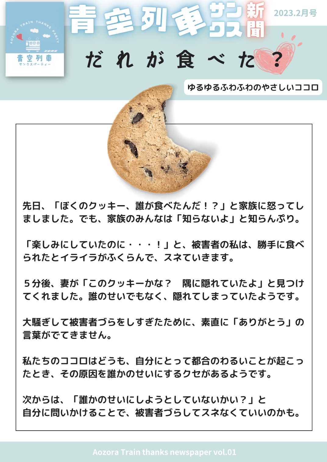 「まあるいやわらかいココロのつくる方法」を日々勉強する中で、夫婦であーだ、こーだ、気づいたことをフリーペーパーにまとめました。