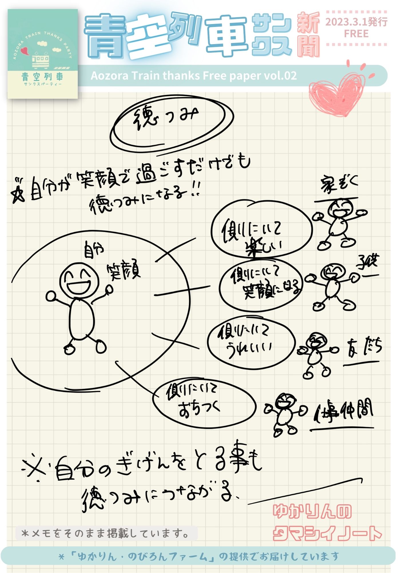 HOME > 手作り本 > 青空列車サンクス新聞 > 青空列車サンクス新聞 「徳つみって?」青空列車サンクス新聞 vol.02 2023年4月10日 「徳つみって何をしたらいいの?」 「徳つみって何をしたらいいの?」青空列車サンクス新聞_2023.3.1ダウンロード Twitter Share Pocket Hatena LINE URLコピー -青空列車サンクス新聞