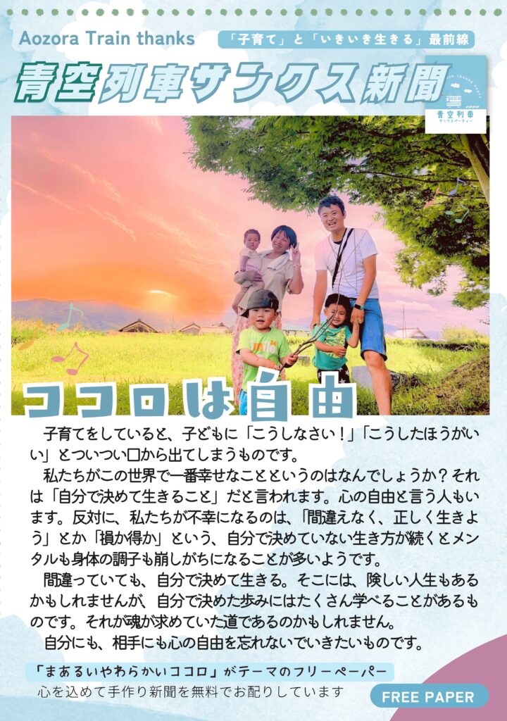 HOME > 手作り本 > 青空列車サンクス新聞 > 手作り本 青空列車サンクス新聞 ココロは自由|青空列車サンクス新聞 vol.18 2024年8月5日 Twitter Share Pocket Hatena LINE URLコピー -手作り本, 青空列車サンクス新聞