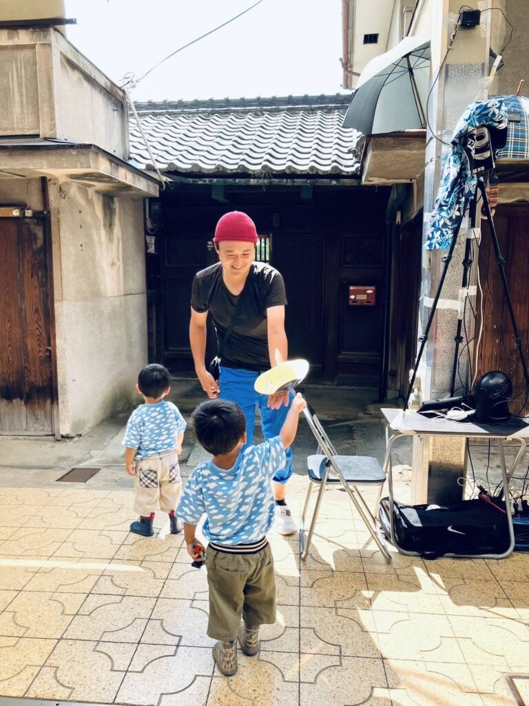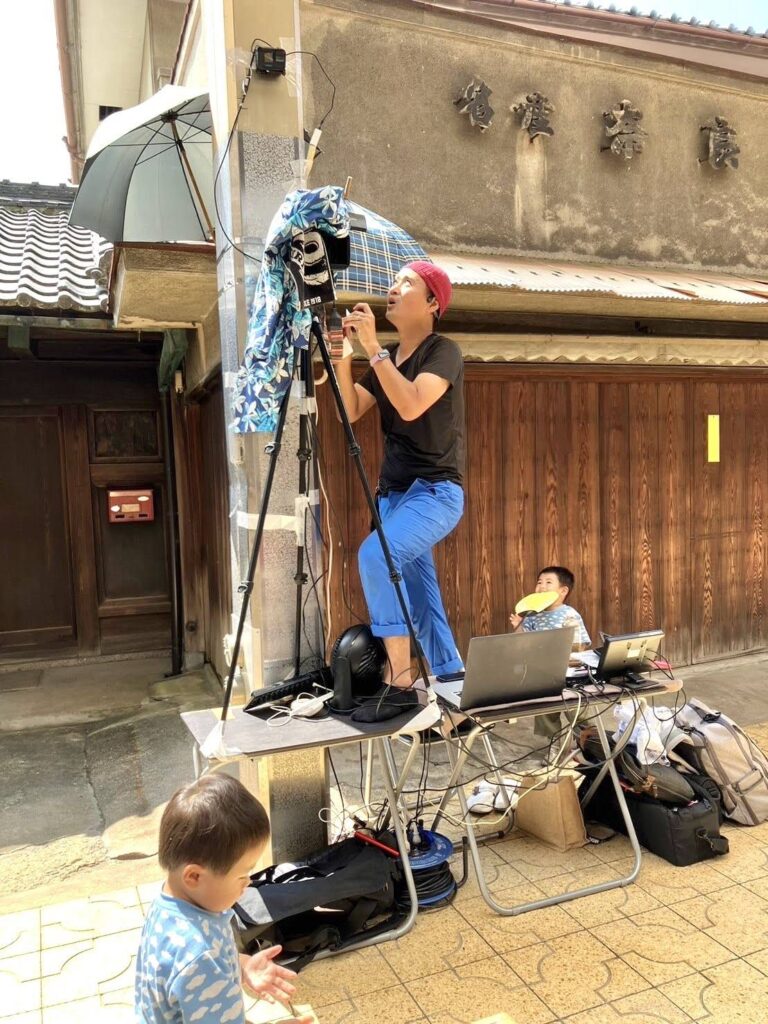 アーケード商店街でのライブ配信のお手伝いは、真夏日で37度超え。