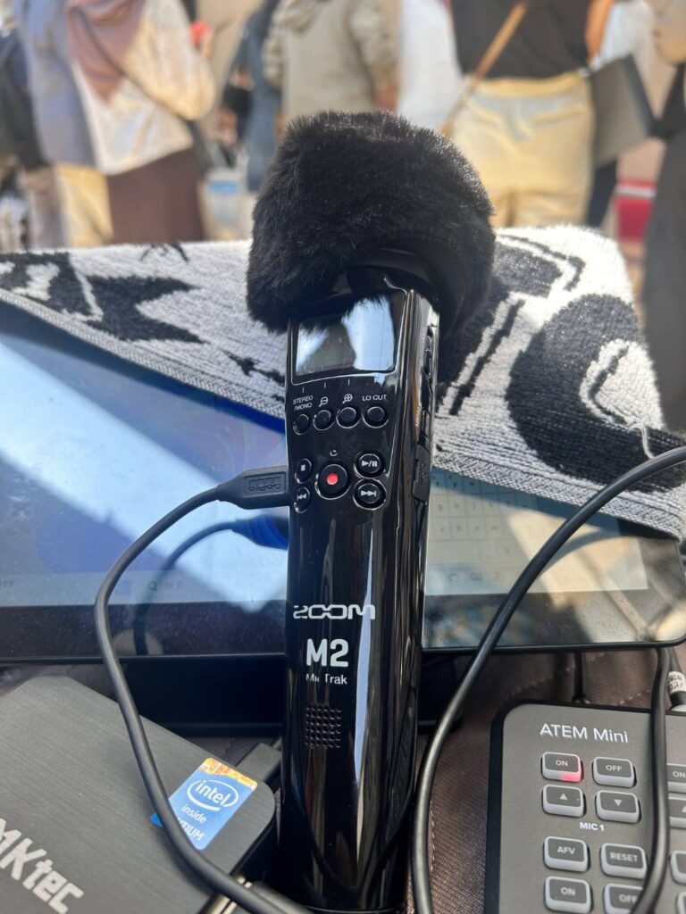 とりあえず、Zoom M2マイクを準備して、OBSシステムの回線につないで急場をしのぎました。