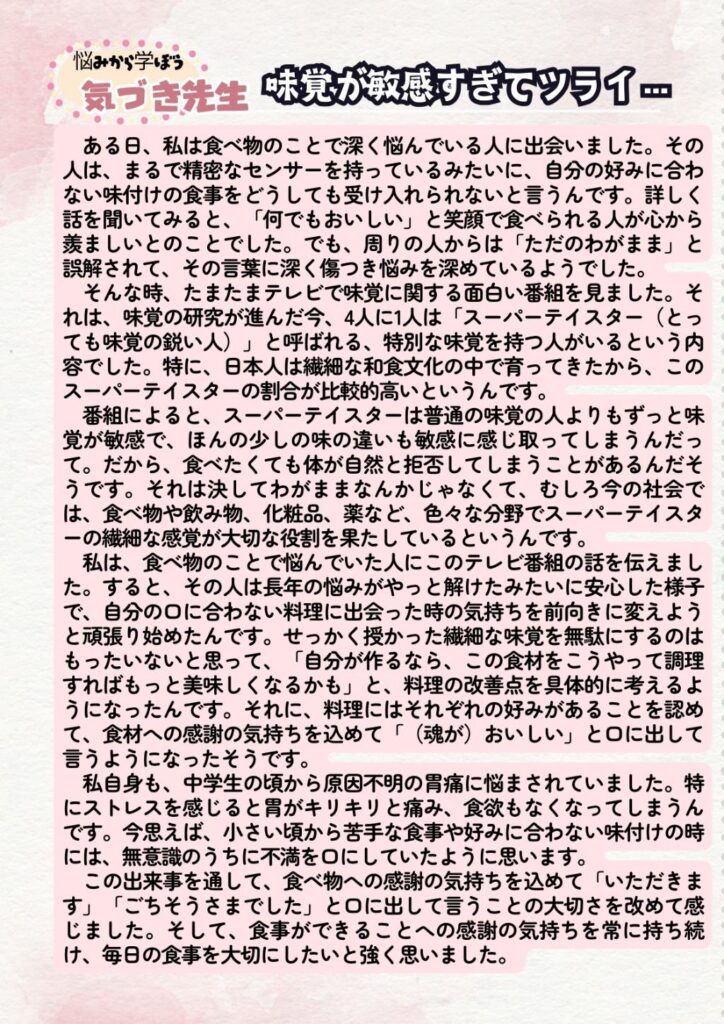 「味覚が敏感すぎてツライ」気づき先生コラム