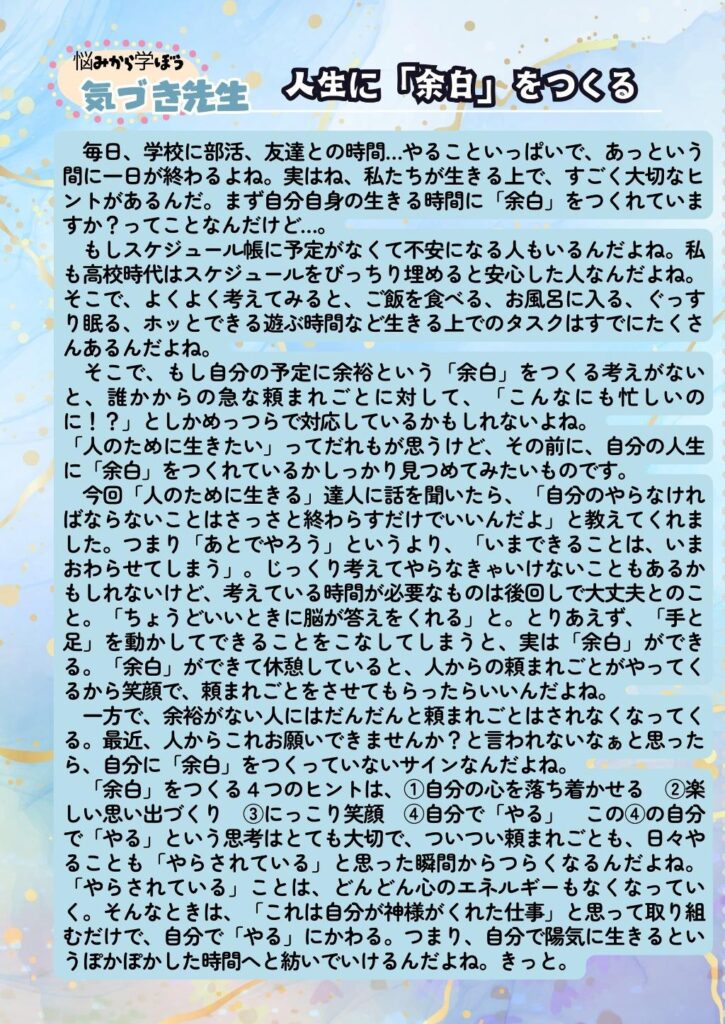 その余白が、急な頼まれごとへの対応力や、誰かを思いやる力につながることもあるんです。