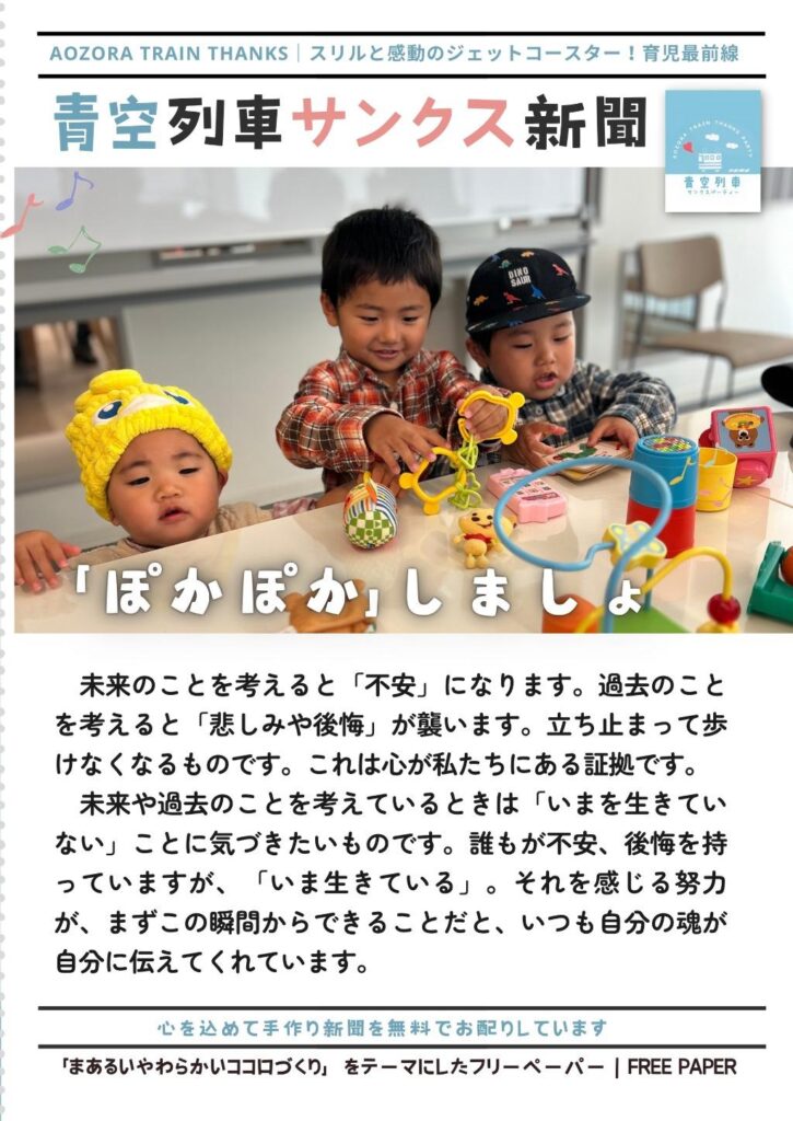 今回の「青空列車サンクス新聞 vol.27」では、「未来に向けて、心をぽかぽかに保つこと」「余白のある生き方」についてお届けしました。